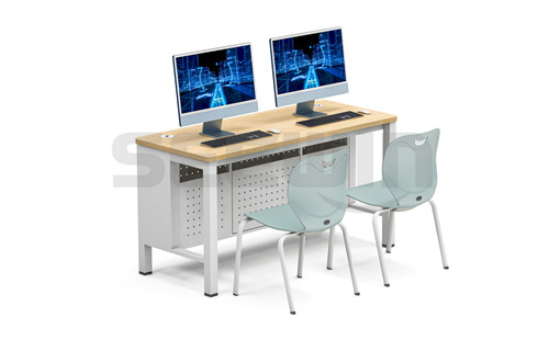 產(chǎn)品桌面采用E0 級MFC 板,環(huán)保安全,優(yōu)質(zhì)鋼架烤漆支架,穩(wěn)定耐用,可組合拼接,適合計算機教室使用。