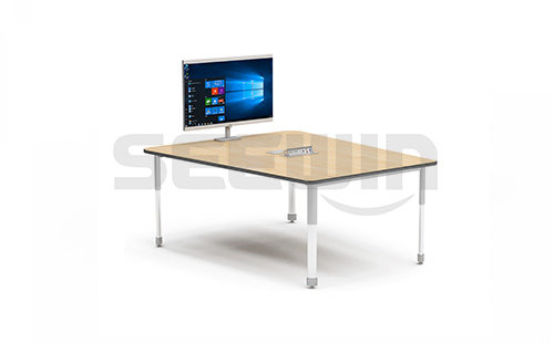 產(chǎn)品采用 E0 級 MFC 板,桌面可配置顯示屏及翻蓋線盒。適用于多人討論場景,可放置于智慧教室、討論室等。