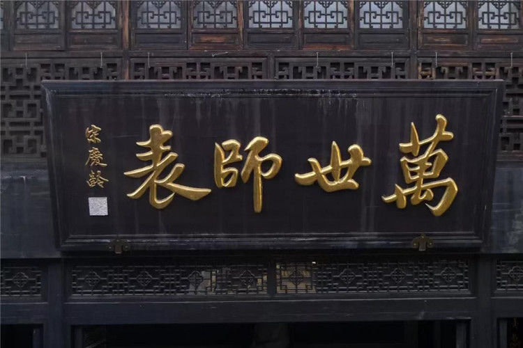 挽聯(lián)在飄,上面寫著"行知先生千古",旁邊則是宋慶齡親筆題寫的四個蒼勁大字——"萬世師表"。