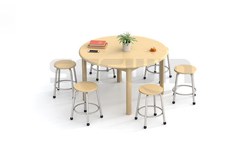產(chǎn)品采用橡膠木指接板,實木桌腳造型簡潔大方,堅固耐用,適合美術(shù)、木工、陶藝等專業(yè)教室使用。
