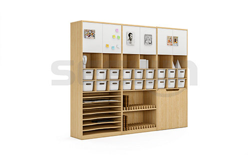 多層次、多類別的美術(shù)收納柜,采用環(huán)保 E0 級 MFC 板及