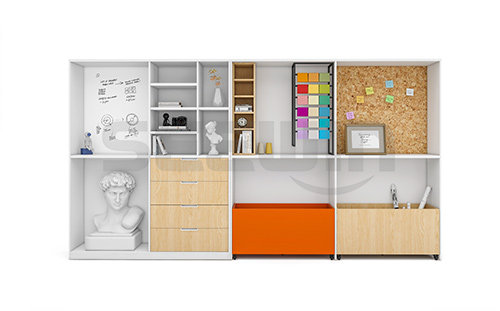 多層次、多類別的美術(shù)收納柜,采用環(huán)保 E0 級(jí) MFC 板及