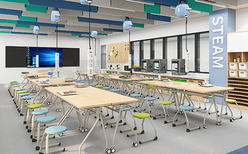 桌面采用E0 級MFC板,PVC封邊,穩(wěn)定耐用,為多種多樣的教學和學習模式提供簡單、高效的切換模式??晒┒嗳伺嘤栍懻撌褂茫哂徐`活性和便捷性。