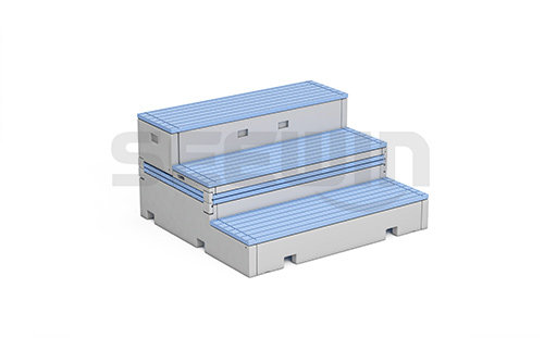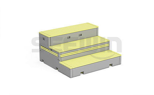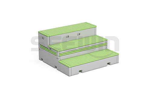 產(chǎn)品采用高密度聚乙烯mm(HDPE)為原料,中空吹塑工藝制作。中空配件側(cè)面設(shè)計(jì)內(nèi)陷抓手,底下有站腳,后面配有腳輪mm(方便移動mm), 保護(hù)地面的同時,滿足使用方便的要求;臺面多條帶防滑點(diǎn)的防滑條,顏色可以選擇,滿足樂感俏皮的設(shè)計(jì)。